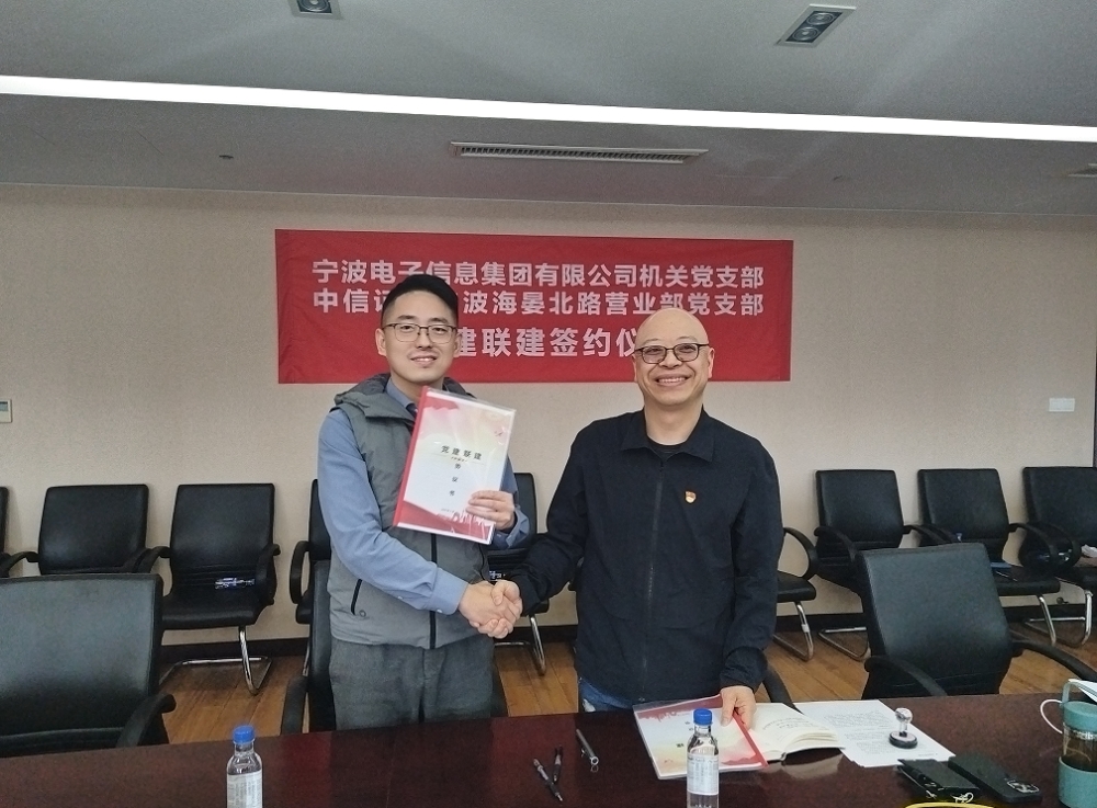 為深入學習貫徹黨的二十大精神,全面落實新時代黨的建設總要求,推動黨建與業務深度融合,4月15日下午,中共寧波電子信息集團有限公司委員會機關黨支部與中共中信證券股份有限公司浙江分公司委員會寧波海晏北路營業部黨支部在寧波舉行黨建聯建簽約儀式。雙方圍繞“資源共享、優勢互補、協同發展”主題,通過簽約共建、專題講座、交流研討等形式,共謀黨建工作新路徑,共筑事業發展新格局。